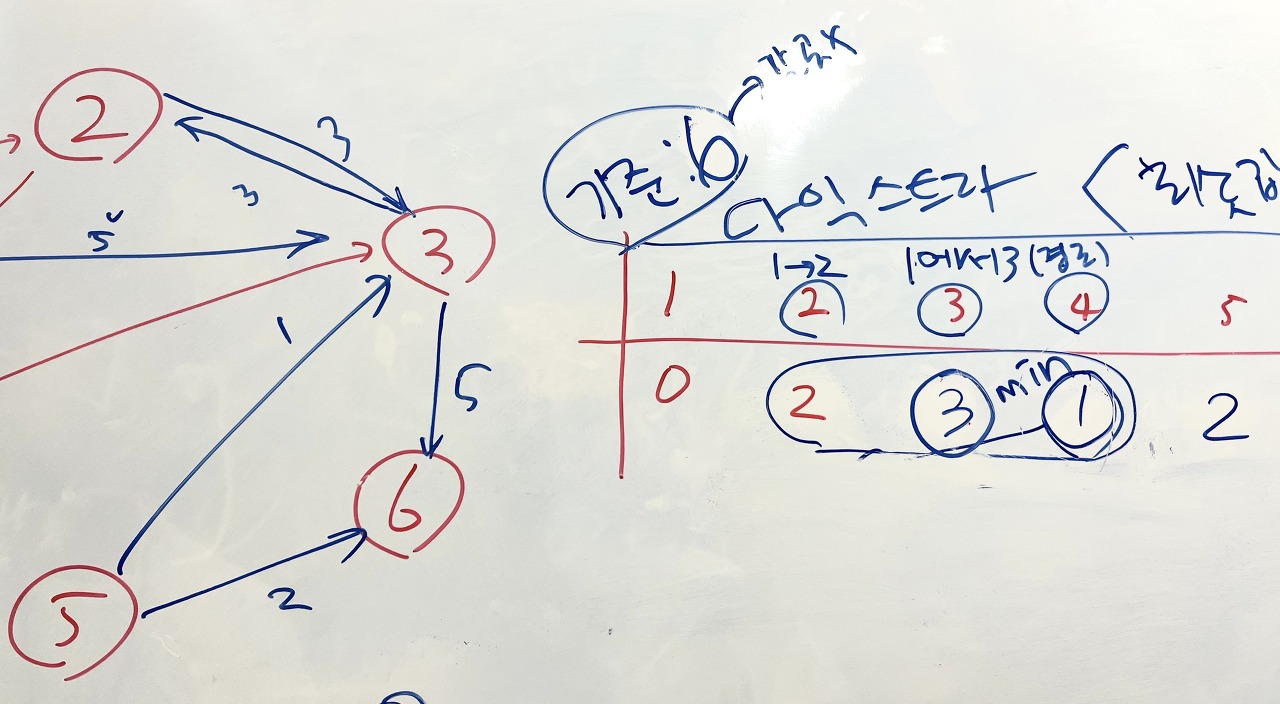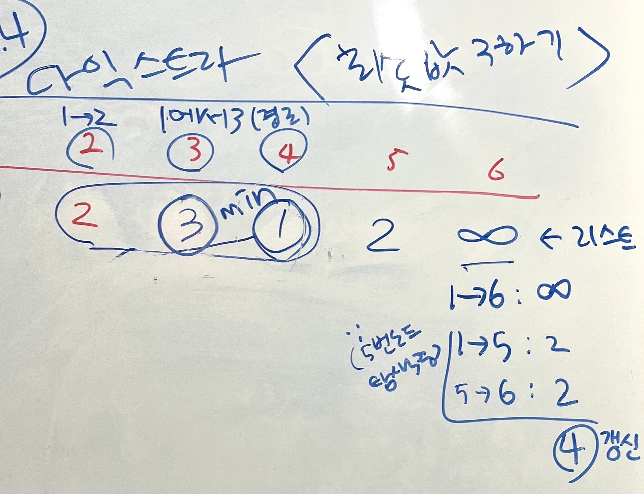 3번에서는 2, 6번으로 가는 최솟값을 구해 갱신할 수 있다